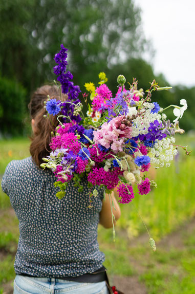 Hinter dem Blumenfeld steht Lea, die voller Begeisterung für die wunderbare Natur, den Anbau nach Bioland-Kriterien und im Sinne der Slow-Flower-Bewegung gestaltet.