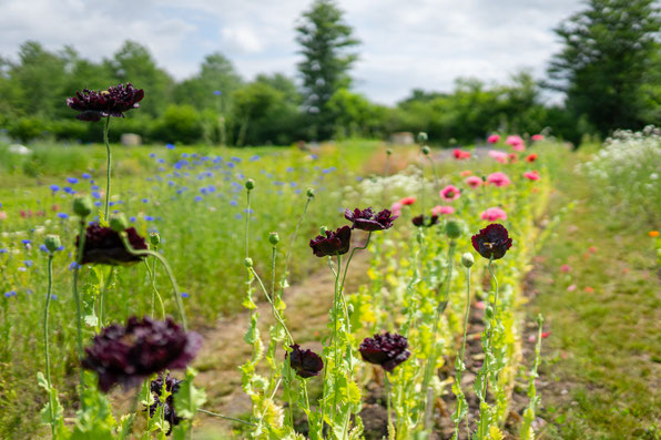 Von Frühling bis Herbst lädt das Blumenfeld auf dem Ringstedtenhof in Lübeck zu einem einzigartigen Pflückerlebnis ein. Mit rund 100 verschiedenen Sorten wächst hier eine vielfältige Auswahl an bekannten und unbekannten saisonalen Schnittblumen und Schnittgrün.